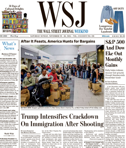 S&P 500 And Dow Eke Out Monthly Gains | The Wall Street Journal -- Sat./Sun., November 29/30, 2025