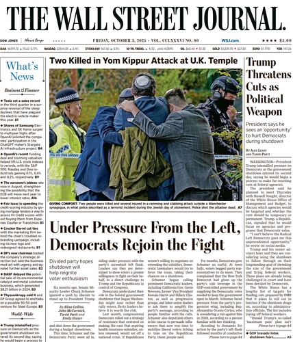 Trump Threatens Cuts as Political Weapon | The Wall Street Journal -- Fri., October 03, 2025