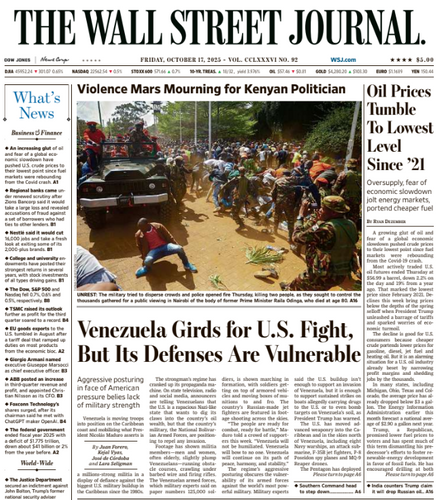 Oil Prices Tumble To Lowest Level Since ’21 | The Wall Street Journal -- Fri., October 17, 2025