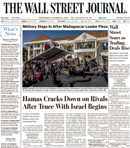 Wall Street Soars as Trading, Deals Rise | The Wall Street Journal -- Wed., October 15, 2025