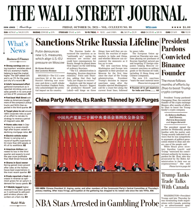President Pardons Convicted Binance Founder | The Wall Street Journal -- Fri., October 24, 2025