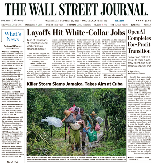 OpenAI Completes For-Profit Transition | The Wall Street Journal -- Wed., October 29, 2025