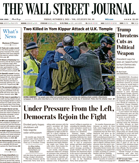 Trump Threatens Cuts as Political Weapon | The Wall Street Journal -- Fri., October 03, 2025