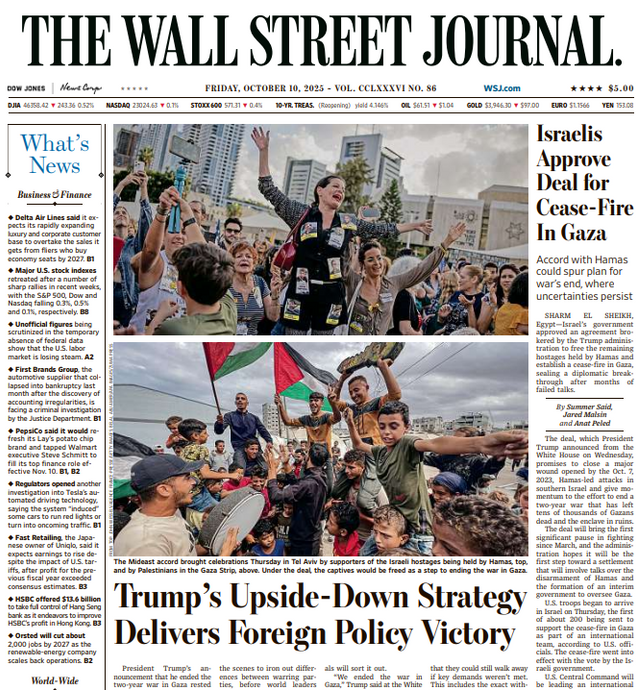 Israelis Approve Deal for Cease-Fire In Gaza | The Wall Street Journal -- Fri., October 10, 2025