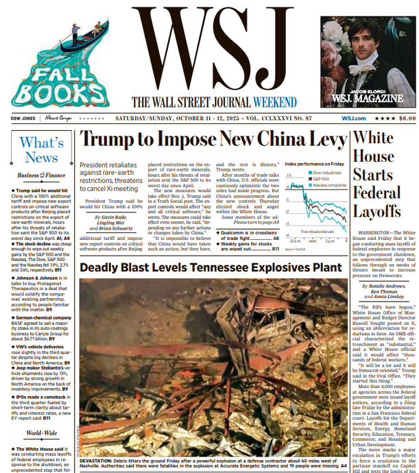 White House Starts Federal Layoffs | The Wall Street Journal -- Sat./Sun., October 11/12, 2025